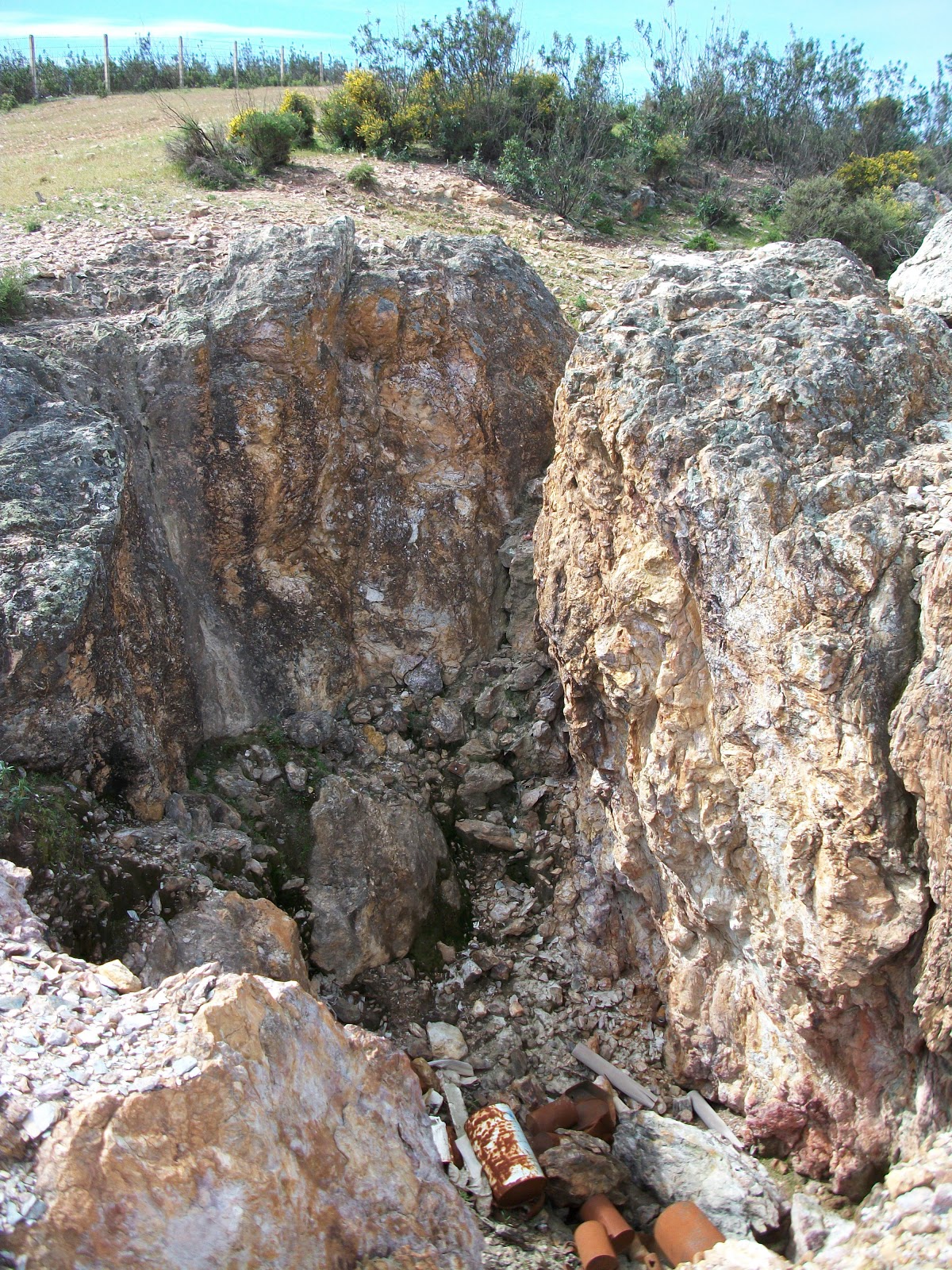 Una zona con bastante escoria se encuentra entre las diversas labores sobre los carbonatos de cobre.